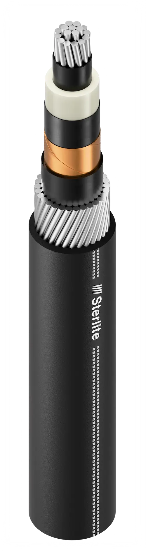 Stranded circular compacted Aluminium conductor, semiconducting layer as conductor screen, XLPE insulated, semiconducting layer as non metallic insulation screen, Copper tape or wire as metallic insulation screen, three cores assembled together with non hygroscopic Polypropylene filters, wrapped with binder tape and PVC sheathed.